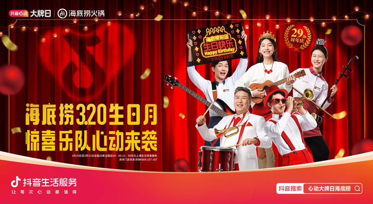 1994年3月20日,第一家海底撈成立,從四川麻將的術語,走向了匯聚各地火鍋特色為一體大型連鎖餐飲品牌;2012年,海底撈開設海外第一家分店;2018年,海底撈在港交所主板掛牌上市。2023年,穿越29年的歲月長河,海底撈迎來即將“三十而立”的一年。在面對激烈與風險并存的餐飲市場,海底撈帶著“火鍋”招牌,依舊保持著領先的優勢,不斷帶給市場更多的驚喜。在3.20生日嘉年華活動中,海底撈成為抖音首個正餐官方直播破億品牌。讓人不禁思索,在競爭激烈的火鍋賽道,29歲的海底撈如何在抖音生活服務戰場,拿下品牌和業績雙重光輝戰果?