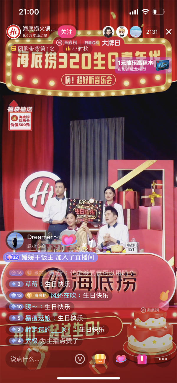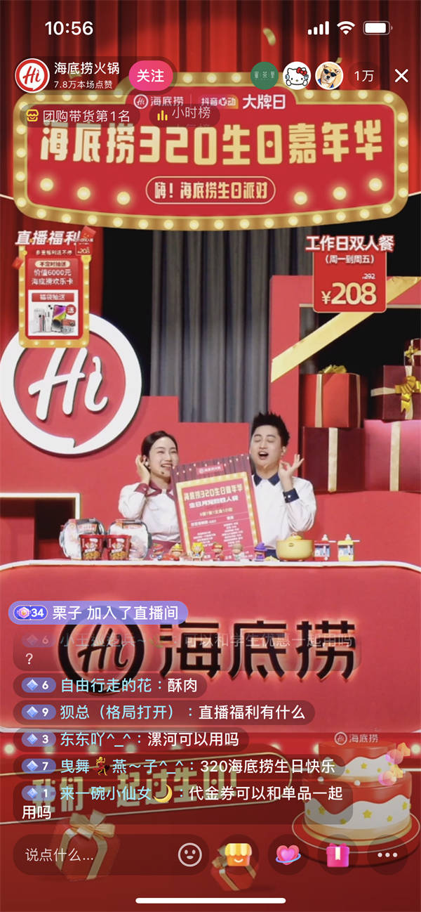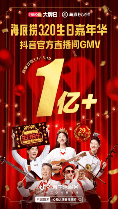 海底撈生日嘉年華抖音直播破億,成首個正餐直播破億品牌