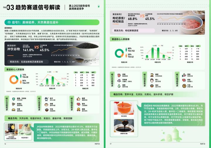 趨勢賽道如沖飲谷物、枸杞原漿/枸杞制品等。