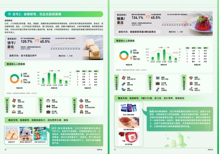 趨勢賽道如餅干/膨化、糖果/果凍等。