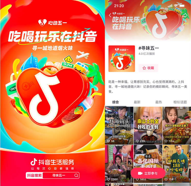 抖音生活服務「心動五一」打通“線上+線下”的經營場景,讓線上好商品、好內容與線下好門店、好生活自然關聯,滿足了消費者和商家的不同“心動”需求,讓“心動”變成“行動”,讓品牌聲量與生意銷量共存,也為商家的節點營銷打開了新局面。