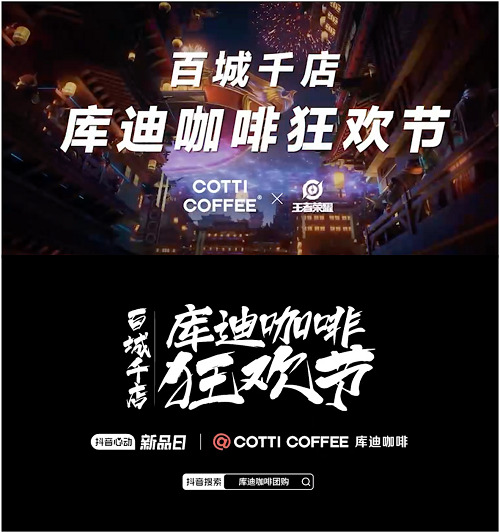 在新品營銷期間,庫迪咖啡通過聯動抖音「心動上新日」黃金線上資源,持續曝光新品海報,并在線下進行門店包裝以及TVC上刊700+萬達影城映前廣告等營銷動作,依托抖音平臺打通線上線下多重玩法,打造新品營銷大事件,最終實現品牌認知和銷量轉化的雙重增長。庫迪咖啡以線上快速引爆新品聲量,線下門店高度配合IP聯合宣發的營銷策略或許能給不少在垂品競爭中探尋營銷策略與模式的商家帶來一些啟示。