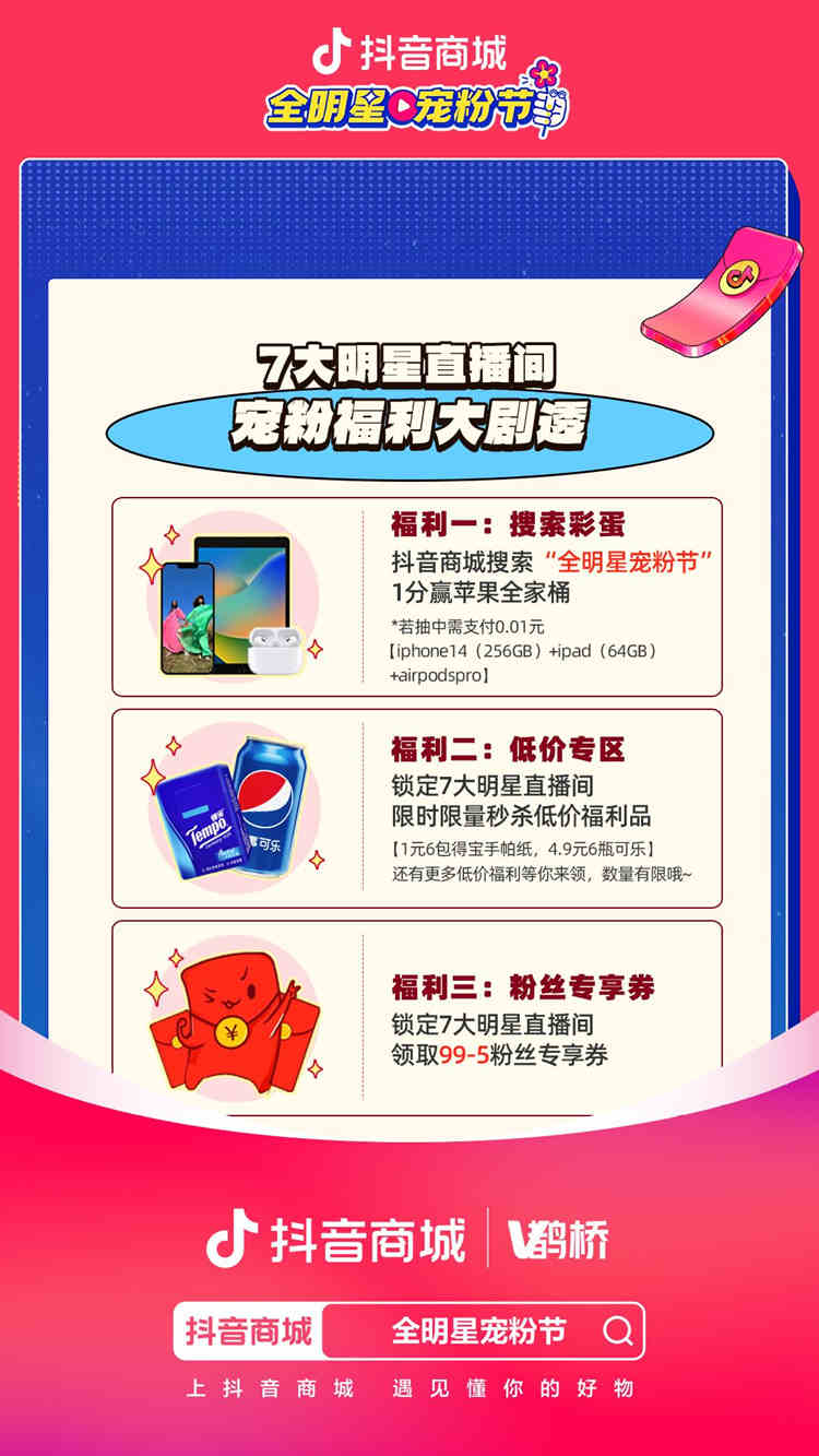 值得一提的是,本屆“抖音商城全明星寵粉節(jié)”,也是抖音電商旗下「鵲橋」平臺發(fā)起的首個官方活動。