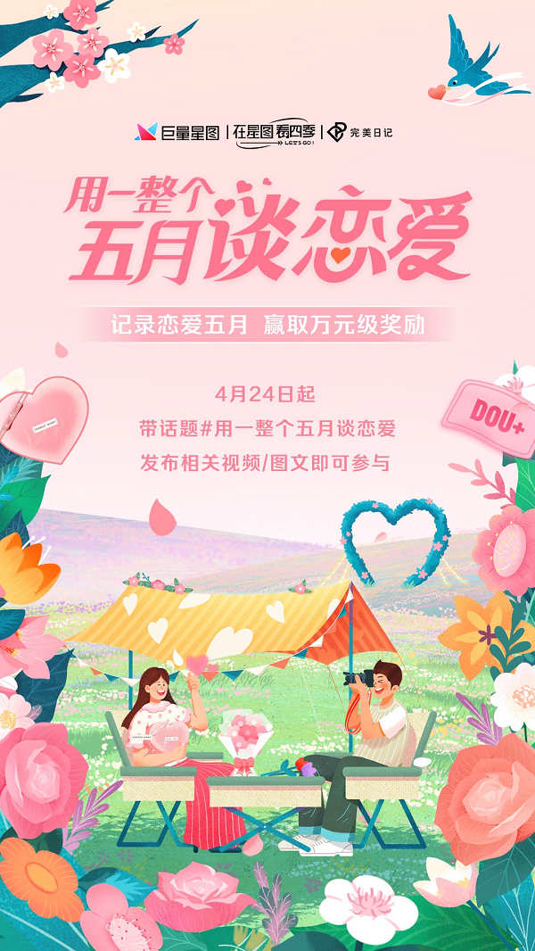 通過對消費者心理的長期洞察,巨量星圖熱點生活方式營銷IP「在星圖看四季」鼓勵創作者們踴躍投稿,打造熱點內容,為品牌提供節點營銷新打法。即日起,上抖音搜索話題#用一整個五月談戀愛 參與巨量星圖多樣玩法,和眾多內容創作者一起,奔赴夏日的心動!