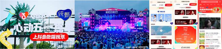 抖音生活服務綜合行業在北京、廈門、麗江打造Fun飛音樂節,在live現場打造潮流集市,搭建互動體驗場景,提供心動好品,吸引歌迷互動打卡每一個商家展區,進行好品收集!發起話題#love哪有live香 ,聯合站外合作達人發布音樂節內容,更有大v現場打卡與粉絲互動,為商家贏得更多展示機會。
