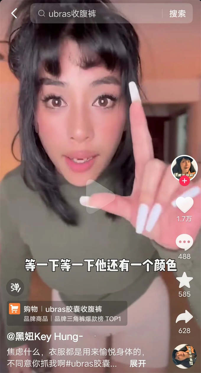 ?在活動開始階段,達人通過短視頻傳遞舒適塑身的品牌觀念,在直播間激發消費者對ubras的興趣;