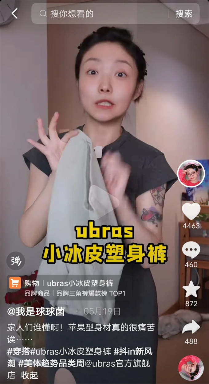?輸出行業主張,沉淀優質內容。在短視頻側,ubras從不同身份的女性視角出發,打造ubras小冰皮壓縮膠囊塑身褲產品宣傳片,令“讓自由有型”的理念深入人心。