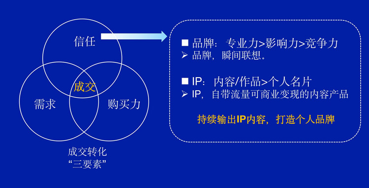 用戶愿意成交轉(zhuǎn)化,需要滿足3個條件:需求、購買力和信任,而品牌是提高信任的方法之一。打造私域IP人設(shè),一方面是可以將品牌人格化,另一方面也是將個人/品牌的信任前置。