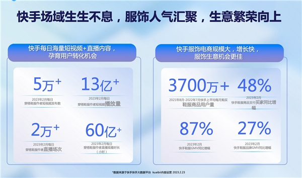 快手磁力引擎服飾業(yè)務(wù)負(fù)責(zé)人康樂表示,清河作為女裝重點(diǎn)產(chǎn)業(yè)帶,直播電商發(fā)展?jié)摿薮?快手作為一家國內(nèi)頭部的短視頻直播平臺,以視頻社交構(gòu)建半熟人社區(qū),打造信任電商生態(tài),塑造長坡厚雪的生意賽道。據(jù)數(shù)據(jù)顯示,2022年快手電商GMV增長32.5%,高達(dá)9012億,快手直播電商增速領(lǐng)跑線上消費(fèi)。