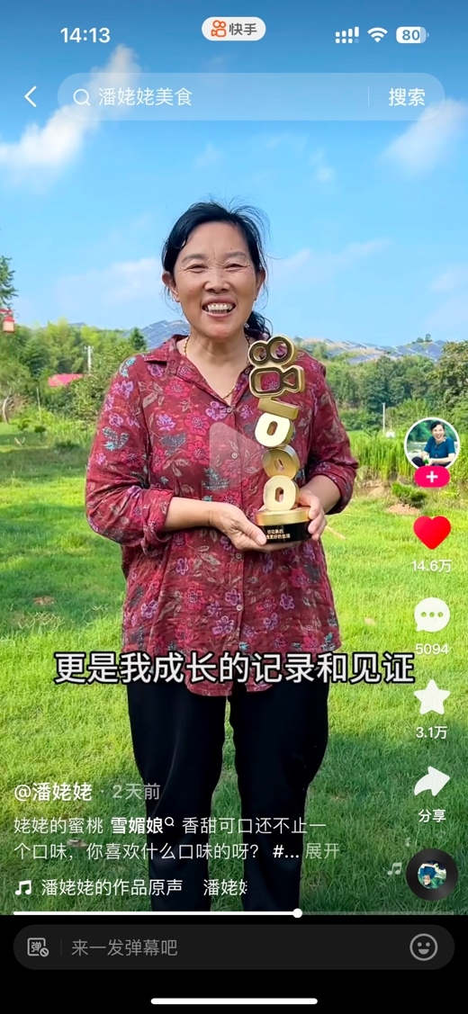 潘姥姥(用戶ID:1921078480)做得一手好菜,樸素溫暖的她讓快手用戶都親切的稱呼她一聲:姥姥。這次拿出曾經(jīng)的獎(jiǎng)杯,姥姥表示里程碑不只是一個(gè)榮耀瞬間,更是她成長的見證。