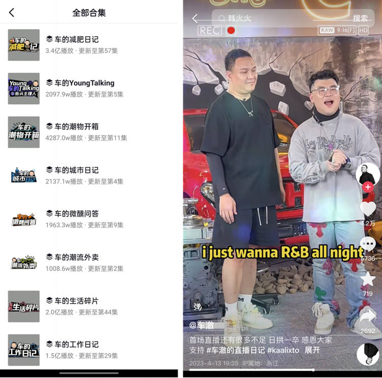 在開始運營抖音后,車澈旗下青年文化廠牌INDE COMPANY開始以短視頻的形式來給內容團隊練手;團隊還在抖音創建了「車的潮物開箱」「車的潮流外賣」「車的微醺問答」等多個合集,播放量均超過千萬,甚至有部分過億。