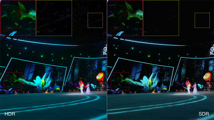 HDR更廣闊的色域空間能最大程度還原現場光影(左側為開啟HDR)