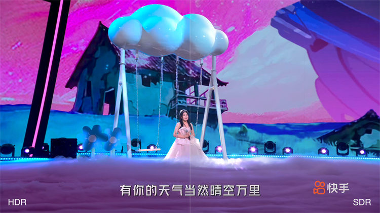 此外,全鏈路HDR技術也在本次盛典直播中展現了其突出的技術優勢,從生產端到消費側,快手采取了一系列創新措施,為用戶帶來了更加震撼和逼真的直播體驗。在采集端,借助快手直播伴侶直播平臺,成功支持了4K+HDR直播。為了滿足高品質HDR直播的需求,快手直播伴侶團隊緊急開發了廣播級采集卡HDR信號的采集技術,確保從源頭準確獲取高動態范圍的畫面信號,使得直播內容更加鮮活生動。