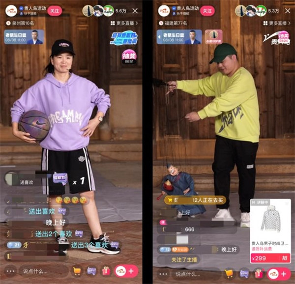 延續(xù)品牌短片內(nèi)核、貼合全民健身主旨,快手“超有意思直播間”進(jìn)一步為貴人鳥量身打造“全民運(yùn)動會”概念,在8月8日全民健身日當(dāng)天推出“泉”運(yùn)會特色直播,在充滿煙火氣與人情味的泉州,帶來一場與眾不同的趣味運(yùn)動會,充分展現(xiàn)貴人鳥品牌倡導(dǎo)全民健身的理念,數(shù)據(jù)顯示,該直播在快手平臺上總場觀超過300萬。
