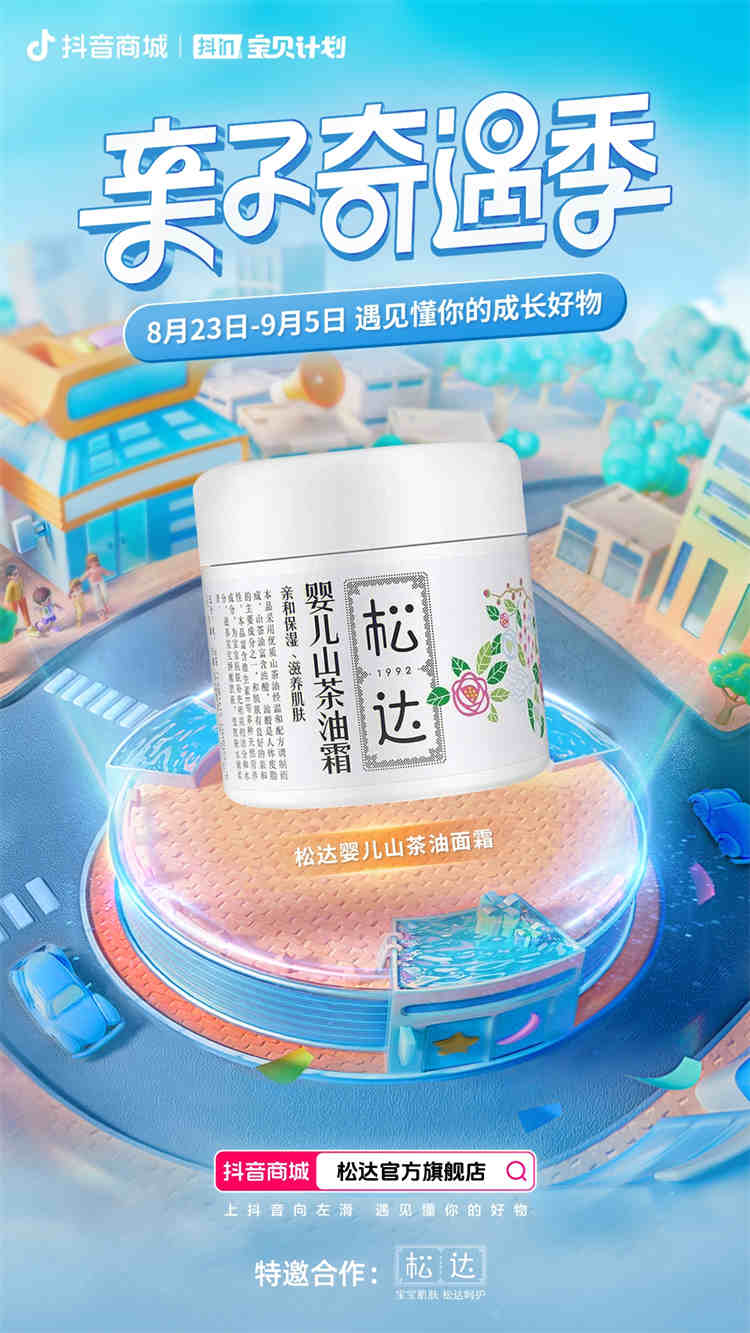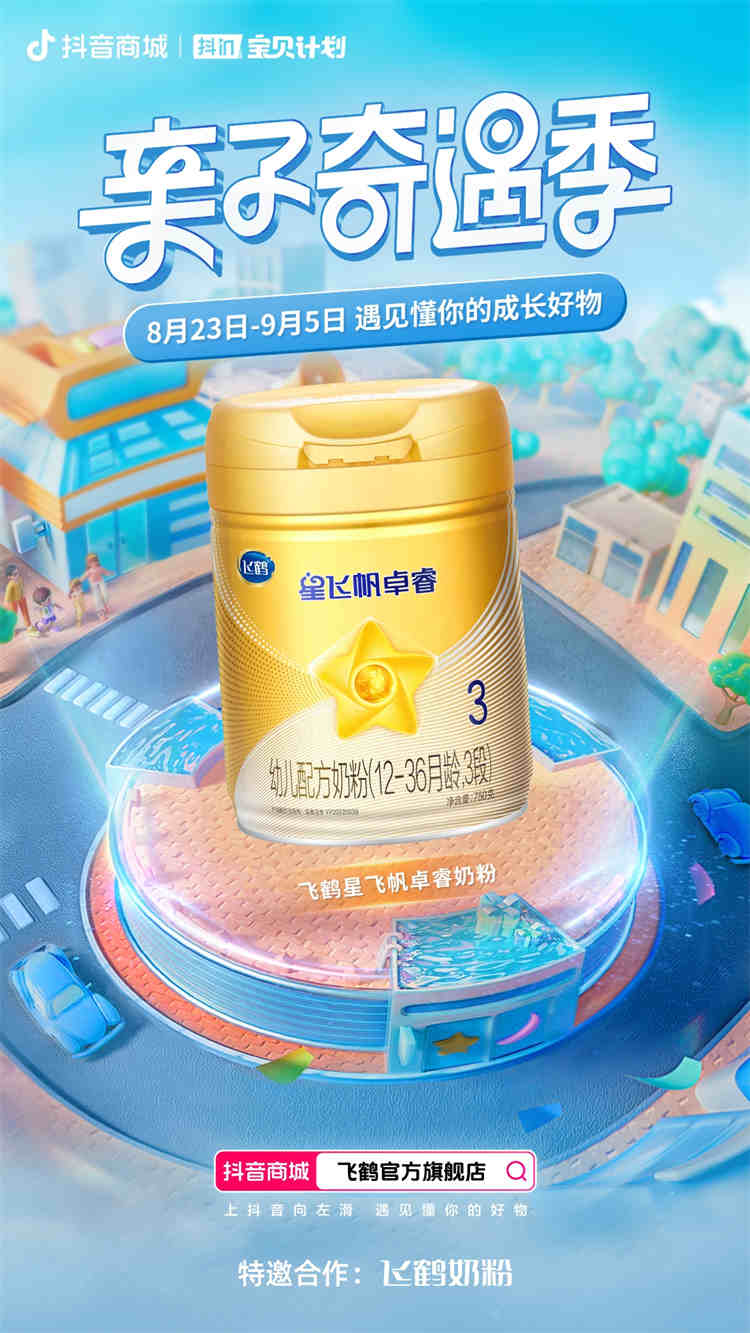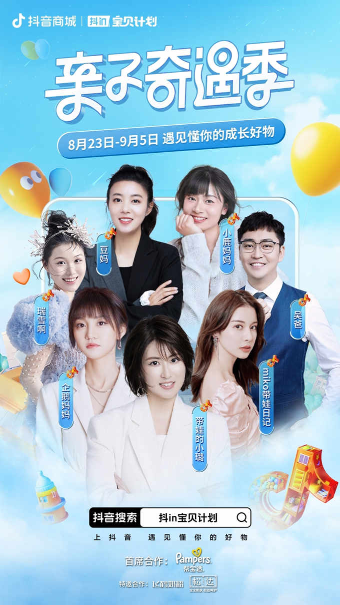 8月23日—9月5日期間,抖in寶貝計劃將圍繞“親子奇遇季”主題,涵蓋奶粉、紙尿褲、兒童洗護、兒童輔食、兒童玩具、兒童服飾等多個細分領域,以一系列舉措不斷挖掘母嬰渠道中的消費潛力。本次活動將攜手首席合作品牌幫寶適,特邀合作品牌飛鶴、松達,優享合作品牌佳貝艾特、星鯊、信誼、紐曼斯,以及十月結晶、舒比兔、美贊臣等十余家母嬰品牌,傳授育兒經驗,分享優質好物,為更多Z世代父母打造一場充滿驚喜、值得期待的奇遇之旅,給年輕的寶爸寶媽提供高品質產品和高價值參考范式,用強內容聯動抖音商城、強轉化推進達人合作、強玩法綁定用戶,為合作品牌生意增長提供更強有力的產品曝光及銷售轉化。