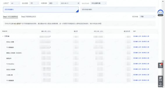 而對于在本品牌Ax人群資產中的未曝光人群,也可以在【閉環場域未曝光】里查看他們在同行業哪些品牌的成交轉化較高,進而鎖定對標品牌范圍,然后將他們加入人群夾,對他們進行內容偏好和人群畫像分析,再相應地調整內容經營策略,更好地吸引這部分人群,提升未滲透人群的轉化。