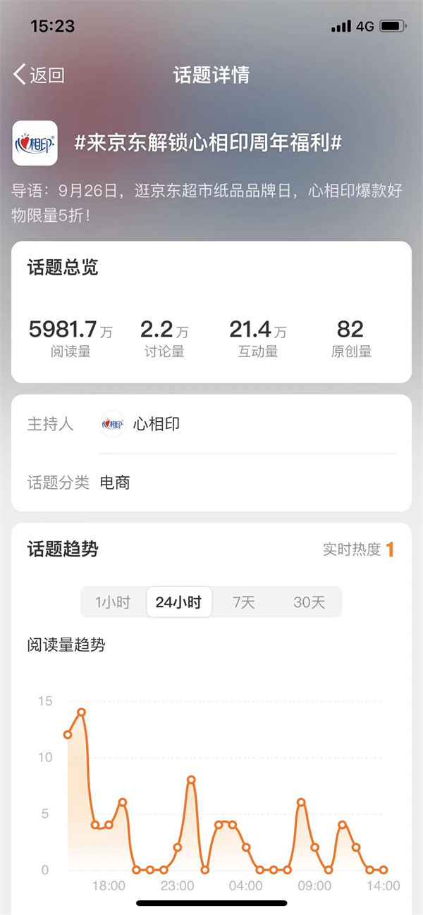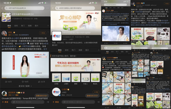 這一系列明星營銷動作,讓心相印成功撬動粉絲圈層,實現跨圈層認知傳遞,品牌得以在更大范圍中傳播。打鐵趁熱,心相印緊接著通過微博熱搜、速遞等強勢曝光方式,將大量用戶引流到京東產品鏈接,推動京東超市紙品品牌日活動走向新的高潮。截至目前,關于本次活動的微博熱搜的閱讀量已達5900w+,高閱讀量、高曝光也說明了心相印把握了用戶“愛追星”的心理。
