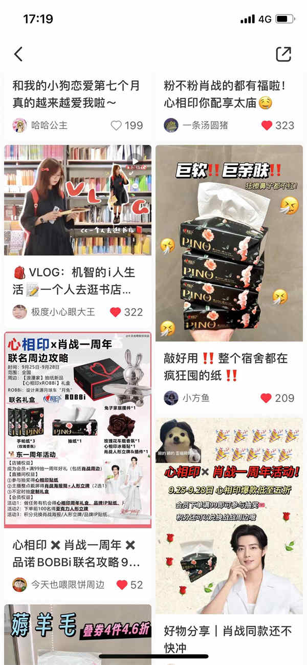 為持續發揮明星效應,進一步拉進與消費者的距離,心相印深度聯合京東超市紙品品牌日平臺,共同推出京東質感聯名禮盒。該款禮盒以“心系”為設計理念,巧妙地表達粉絲和肖戰彼此的心系、品牌和用戶彼此的心系、紙巾和生活彼此的心系。這條和年輕消費者溝通的“心”路徑,塑造了心相印“懂你所愛”的品牌形象,同時與消費者建立起長效的情感鏈接,該禮盒成為會員積分兌換熱度TOP1產品就是營銷達效的有力證明。