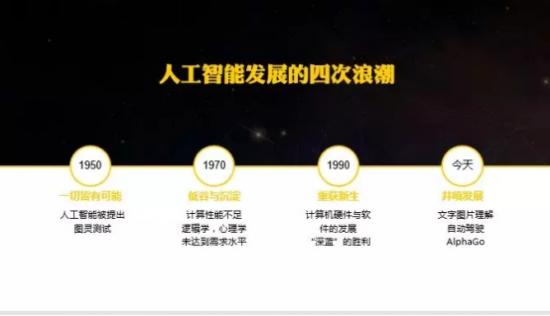 “人工智能發(fā)展到今天,它其實并不是一個新的概念,它最早可以追溯到1950年。發(fā)展至今天,它一共經(jīng)歷了四次浪潮?!蓖跛己跁辖榻B到。