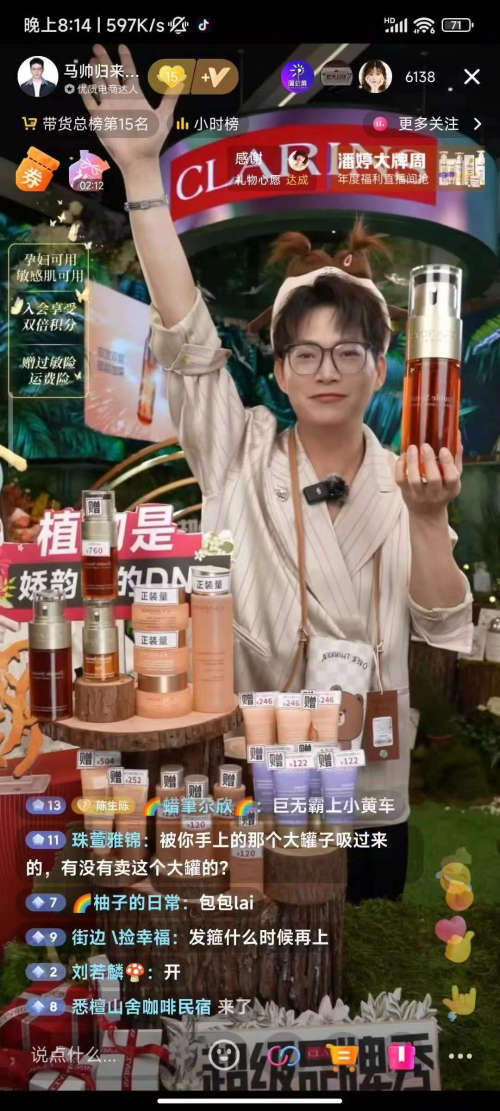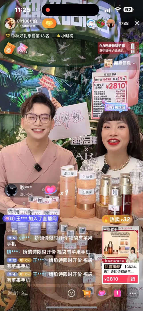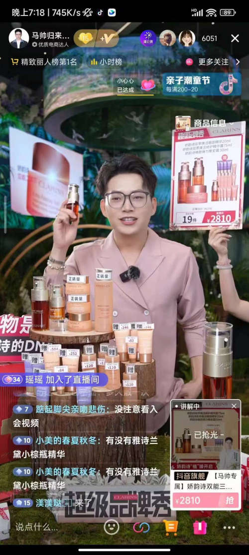 從風格塑造,到趨勢引領,奢侈品都離不開傳播效應的助力,借助場景營銷新玩法打動消費者。直播場景,是時間空間下人與情景的交互,在真實的場景畫面中,更容易引起消費者的情感共振,消費者的特定需求也更易被激發(fā)。超級品牌秀第二季中,法國嬌韻詩將植物請進直播間,同時還有對生存環(huán)境有極致要求的螢火蟲。馬帥(抖音賬號:馬帥歸來)首秀當晚,即登陸了抖音話題熱搜:#抖音出現(xiàn)森林直播間、#馬帥將螢火蟲帶進直播間、#嬌韻詩與螢火蟲共享浪漫。