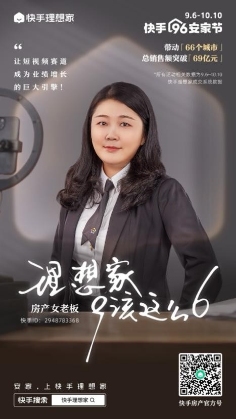 在快手96安家節中,不僅平臺吸引超460萬人參加,帶動66個城市的超900個樓盤成交,總銷售額突破69億,盧文清也借力活動、福利,業績達5000萬。