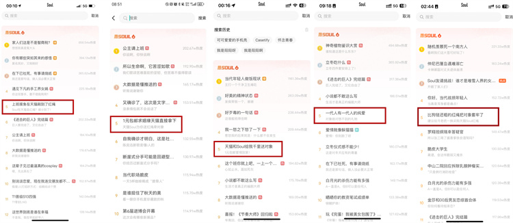 為了搶風頭賣好貨,各大合作平臺賣力宣傳,SoulApp站內連上五天熱搜,全面覆蓋新一代年輕用戶群體,以劇情式話題持續吸引用戶關注。