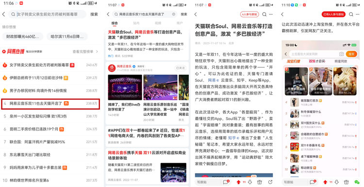網易新聞客戶端內也搶占了高位熱搜強勢刷臉,多家媒體報道解讀開店事件,進一步擴散傳播。