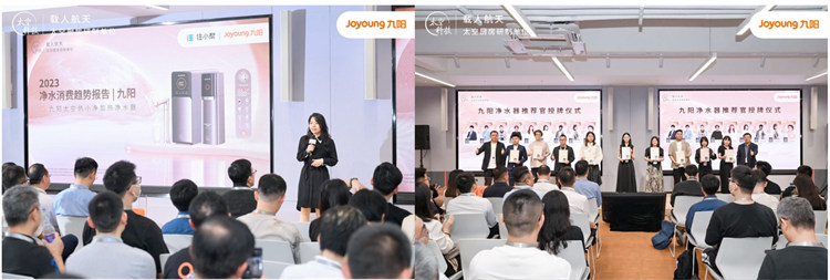 此外,九陽還聯合住小幫,基于平臺家裝用戶與設計師調研數據,現場發布《2023九陽凈水消費趨勢報告》,分享凈水行業的時下洞察與最新機遇。同時,發布會還舉行九陽凈水推薦官授牌儀式,9位人氣設計師未來還將與九陽深入合作,以共同為家裝用戶提供更優質的居家飲用水體驗。