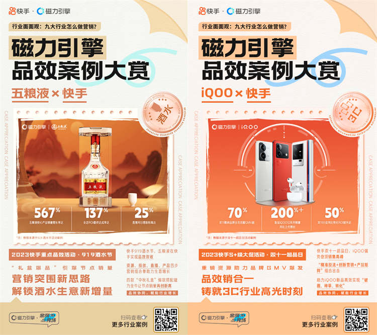 五糧液和iQOO都屬于高客單價產品,不具備普通日化、食飲的“走量”特點,兩個品牌精準借勢快手919酒水節和雙十一節點,精準聚焦人群需求,節點銷量均創新高。