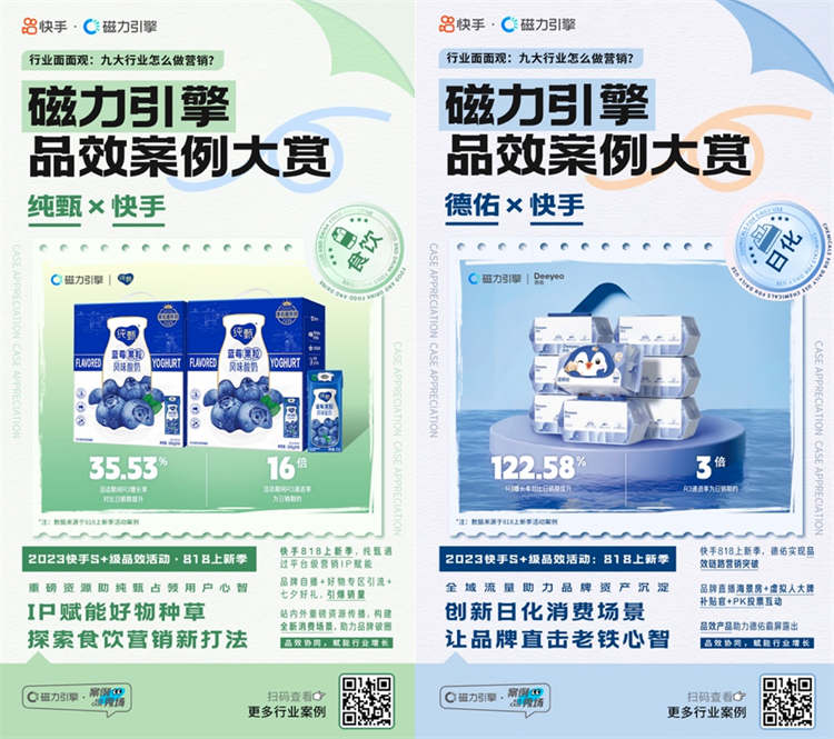 如今,不同品牌面臨著不同的具體痛點,食飲日化行業增量難,小眾賽道受眾單一,品牌破圈困難。品牌們鉚足力氣,力爭在各個節點大促中獲得更多的流量和生意增長。無數商家已經借助快手品效行業活動和品牌開放日等,讓人、貨、場營銷三要素達到了最大程度的匹配,實現流量提升。