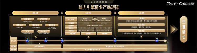 擴大人群覆蓋、占領用戶心智,是品牌營銷的重要一環。快手通過開屏、信息流、直播、短視頻、達人種草矩陣、互動產品等全域推廣資源,多路徑觸達目標用戶,幫助品牌夯實用戶心智。同時,磁力智投、磁力金牛等全站推廣資源,可實現全域流量助推和確定性增長;再加上「人、貨、場」三端深度經營,以及磁力萬象數據策略平臺的數據賦能,構建起磁力引擎商業產品矩陣,為品牌在站內高質量營銷帶來全域經營保障。
