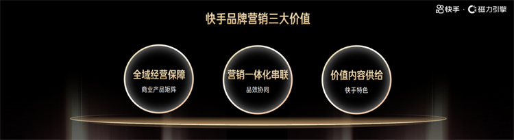 孫匯灃在分享中提到,快手品牌營銷擁有“全域經營保障”“營銷一體化串聯”“價值內容供給”三大價值,基于自身豐富強大的資源、產品矩陣,能夠為不同品牌帶來多維度的完整解決方案。