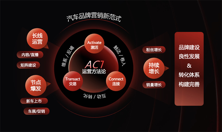 “ACT”汽車運營模型深度拆解了汽車品牌營銷“Activate激活-Connect連接-Transact交易”的三個階段,實現了目標覆蓋、種草圈粉、留資轉化的全鏈條效果。助力汽車品牌觸達并轉化真實的目標受眾,以實效營銷拉動真正的生意增長。