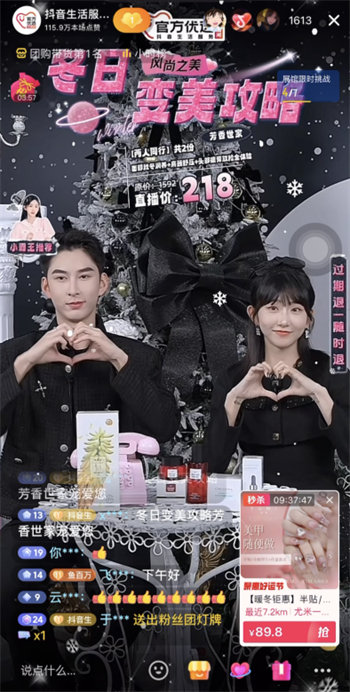 結(jié)合冬日變美攻略來(lái)打造品類(lèi)項(xiàng)目,從場(chǎng)地搭建到主播服裝,定制直播間,通過(guò)妝造全方位展現(xiàn)冬日潮流趨勢(shì)——“五金女孩”,營(yíng)造精致女孩兒的變美氛圍,打造麗人向往生活。