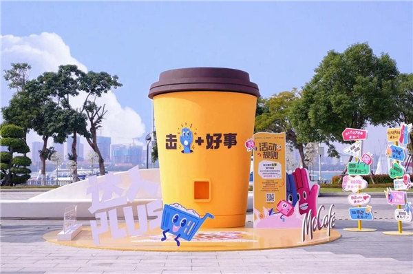 除了高燃的線上活動玩法,11月25-26日,麥咖啡還聯動巨量星圖打造「擊掌+好事」線下快閃大事件,通過將熟悉的麥咖啡小黃杯變身3米大黃杯的場景設置,將場景與產品賣點深度結合,吸引了眾多用戶前往合拍。不僅充分調動起年輕人興趣,引起用戶共鳴,也為活動的曝光和后續產品的轉化帶來更多可能。