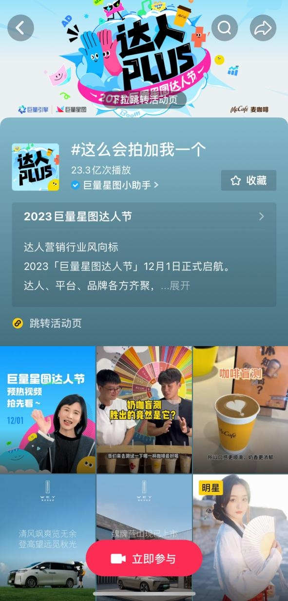 基于此,活動期間,#這么會拍加我一個 互動話題上線,話題聚合了大規模、多賽道的優質達人持續輸出種草內容,集中釋放種草勢能,為麥咖啡搭建大聲量種草陣地,截至目前,#這么會拍加我一個 話題已收獲23.3億次播放量。