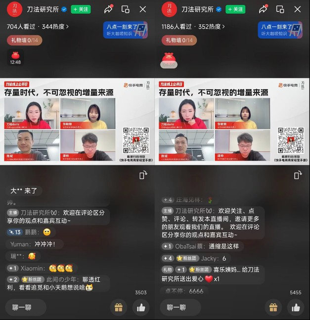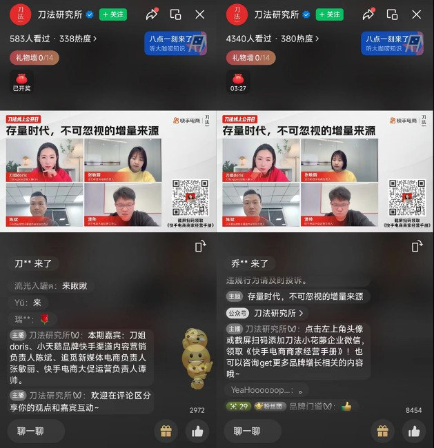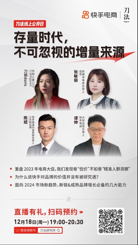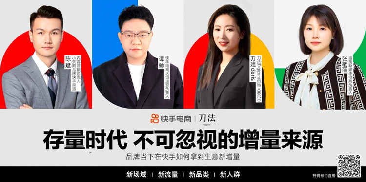 近期,刀法研究所發起《存量時代,不可忽視的增量來源》線上公開日直播論壇,由其創始人兼CEO刀姐邀請快手電商大促運營負責人譚帥、小天鵝品牌快手渠道內容營銷負責人陳斌、追覓新媒體電商負責人張敏麗,共同探討品牌在快手上的增量價值。