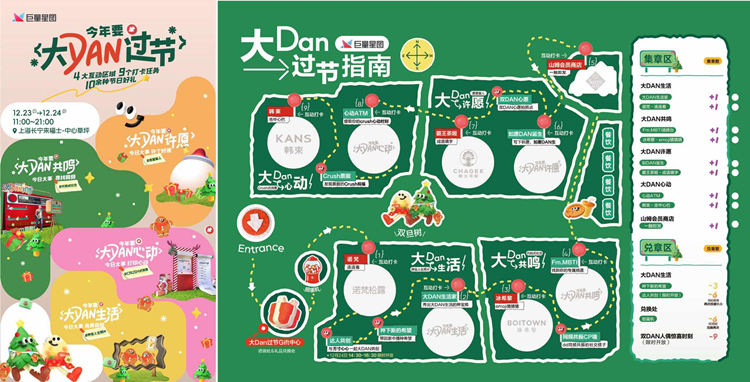 巨量星圖達人節快閃嘉年華,與冰希黎、霸王茶姬、韓束、諾梵、山姆聯手,為到場的小伙伴們打造極致互動體驗樂園,品牌集結,認真寵粉,引爆了整個周末。圍繞過節「四大趨勢」,活動4大區域內有著各具特色的9大打卡點,完成趣味互動,打卡收集印章,即可換取圣誕好禮,找到「雙DAN人偶」還有特別驚喜,讓雙旦留下一段心動記憶,給2023一個夢幻收尾。