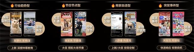 熱點:品牌可以抓住寵物領域的各種熱點,包括行業趨勢型、節日節點型、商家自造型熱點等,吸引更廣泛的關注和參與,尤其在大促期間巧妙蹭熱點,并在全域做好承接,可以帶動更多生意轉化。這種熱點營銷不僅可以使品牌緊跟潮流,還能夠借助熱點的流量迅速提升品牌知名度,加深品牌記憶。