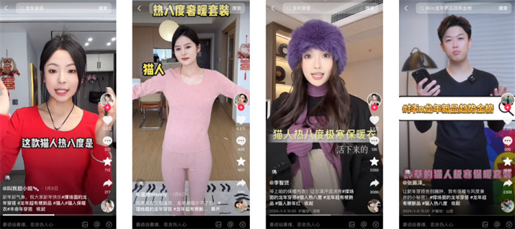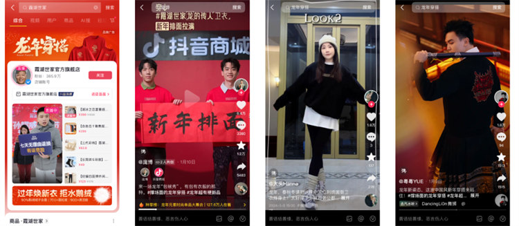 「抖in新風潮·龍年超有梗」活動上線#撐場面的龍年穿搭和#龍年超有梗新品兩大話題,引發消費者的討論和關注。明星、達人緊跟熱點,分享龍年新穿搭,展示了羽絨服、大衣、毛針織衫、衛衣、保暖內衣等不同品類服飾品牌的潮流態度。截至目前,相關話題的總播放量突破3億。