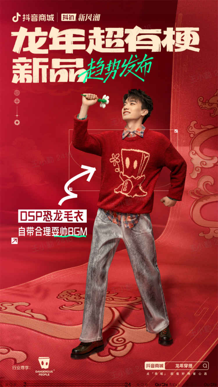 造梗、玩梗正成為年輕人表達自我、營造氛圍的社交方式。抖音電商大服飾行業通過洞察發現,春節將至,消費者在穿搭上傾向融入中華龍的元素,不僅體現濃濃年味,更代表“威嚴神秘”的祥瑞力量護體,通過在穿搭上玩出梗,表達年輕人的龍年穿搭態度。