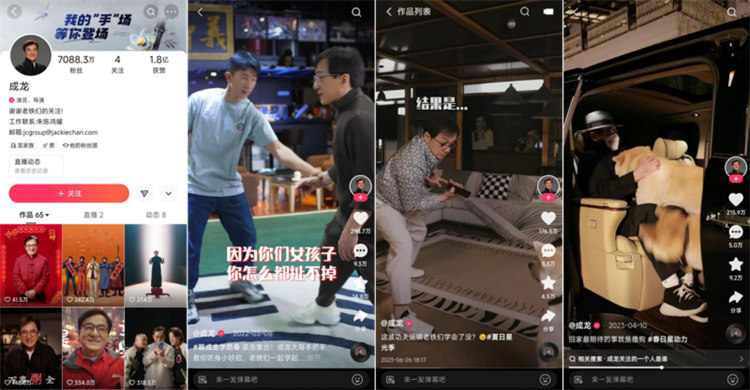 早在2021年10月,成龍就正式入駐快手,開通了其全球首個短視頻社交賬號。截至目前,成龍的快手賬號粉絲量已突破7088萬,是當(dāng)前快手站內(nèi)粉絲量最多的明星賬號。老鐵們親切稱他為“龍叔”,通過短視頻看他發(fā)帖教女性防身、玩轉(zhuǎn)花式功夫運鏡、練習(xí)蹲馬步打麻將、分享自己的養(yǎng)狗趣事……始終保持小人物精神的成龍,以有血有肉、有喜有悲的真實狀態(tài)示人,為老鐵們帶來無數(shù)情感共鳴時刻。