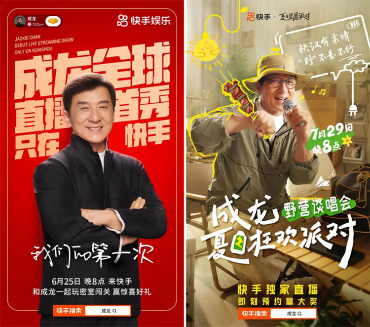 2022年6月,成龍以「我們的第一次」為主題在快手發(fā)起全球直播首秀。直播圍繞成龍出道60年展開,回顧了他既有鮮花掌聲、也有傷痛疾病的闖蕩生涯。期間,不僅有黃子韜、謝霆鋒等明星助陣成龍開啟歷險之旅,還有三位快手達人作為密室闖關(guān)“守關(guān)人”和成龍切磋比試。數(shù)據(jù)顯示,該直播累計超2.2億人次觀看,互動量高達3.2億。
