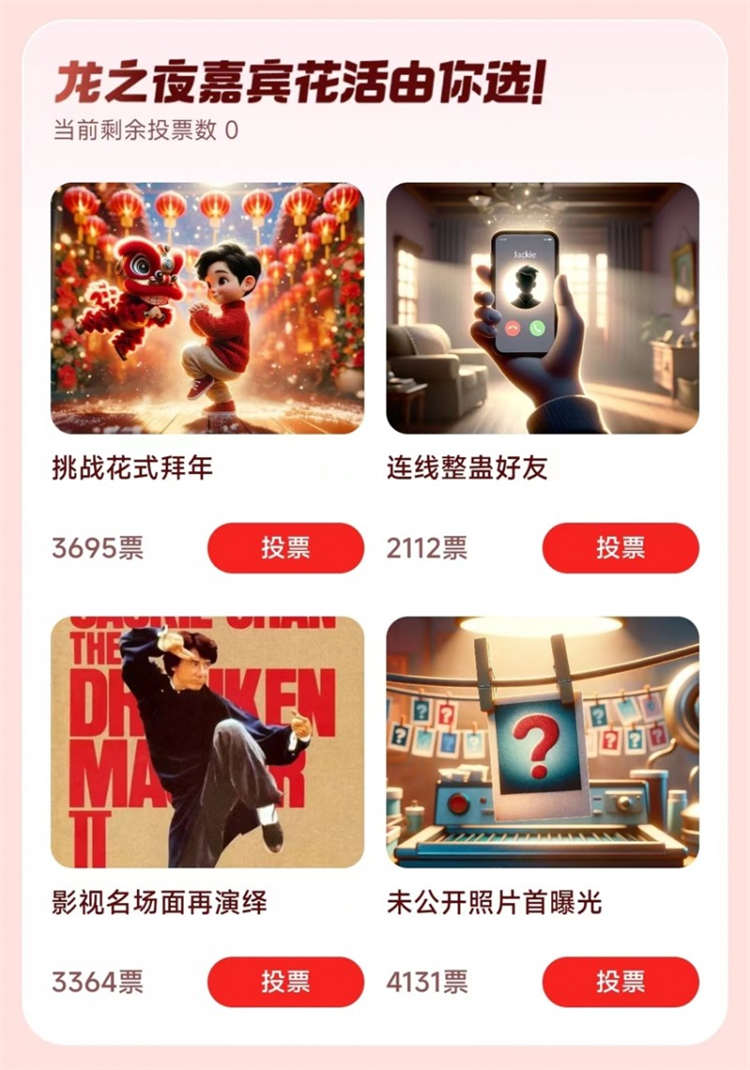 在眾人為最終的“龍之夜菜單”努力時,快手將用全民皆可參與的線上投票互動玩法,讓用戶在數(shù)字世界找回儀式感,挑戰(zhàn)花式拜年、連線整蠱好友、影視名場面再演繹、未公開照片首曝光等嘉賓花活任大家挑選。活動期間,上快手搜索「龍之夜」預(yù)約直播、完成互動,更有機會贏取金條大獎,在歡聚的時刻上演龍年遇成龍、龍年行龍運。