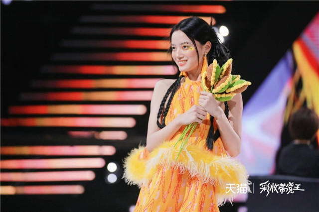 吳瑤所在的“新年開運(yùn)”組,則將“新中式”主題妝造呈現(xiàn)得淋漓盡致,用紅色財(cái)運(yùn)、粉色桃花運(yùn)、橘色好運(yùn)等中國風(fēng)韻滿滿的年味妝造為現(xiàn)場觀眾“開運(yùn)”。